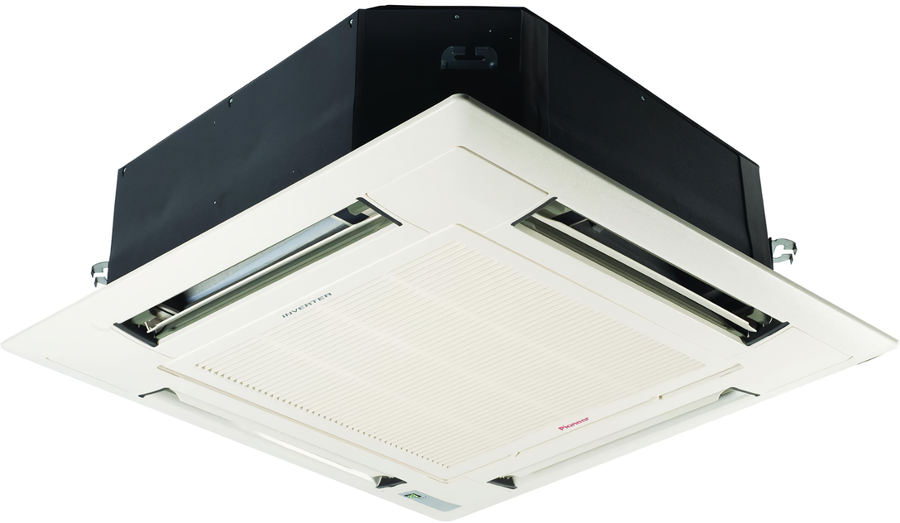 Внутренний блок Pioneer (Пионер) KCMS18A/MBM03 относится к кассетному типу оборудования и предполагает установку в ячейку подвесного потолка. Устройство позволяет эффективно охлаждать площади 45-50 квадратных метров и подходит для небольших офисов или магазинов. Также в комплектацию входит дренажный насос для откачивания конденсата.