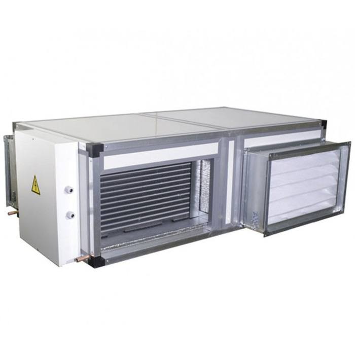 - Дополнительный нагреватель (водяной или электрический), при необходимости, с высокой точностью догревает приточный воздух до заданных значений