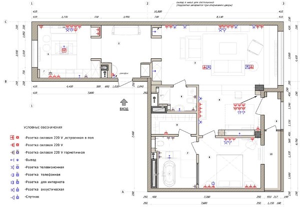 - Четкая схема размещения выключателей и розеток.